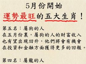 速看!5月份開始運勢最旺的五大生肖!